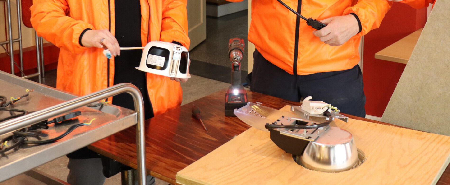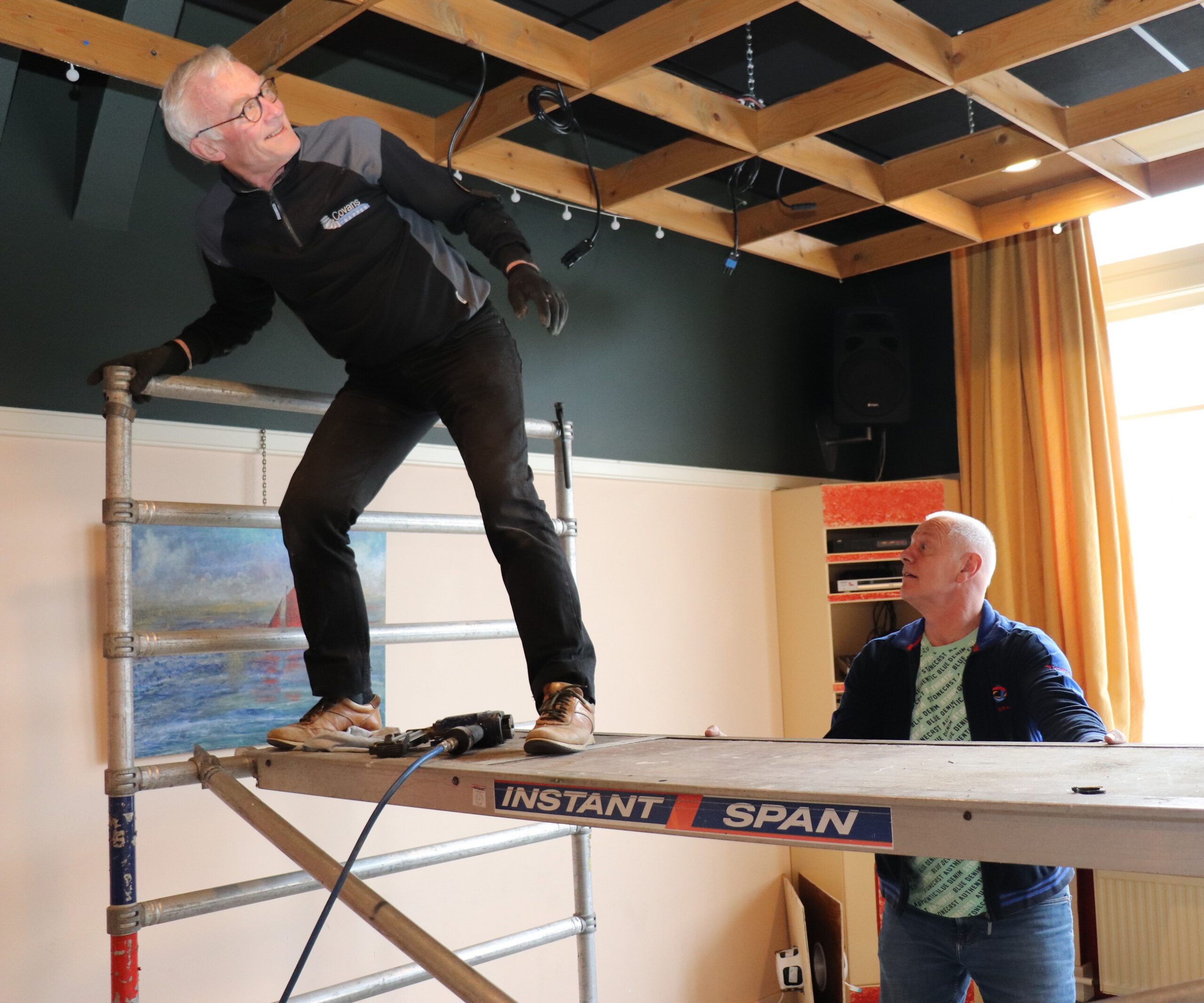 Na een korte briefing en voorstelronde hebben we ons bezig gehouden met het vervangen van de oude “energievretende” verlichting naar energiezuinige ledverlichting. Ook zijn er vele plafondplaten in de grote zaal en in de toneelzaal vervangen.